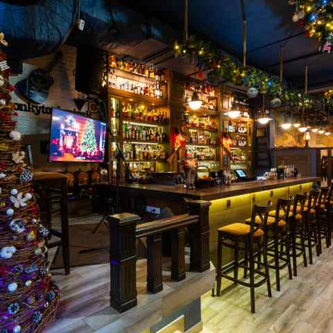 Бар «Хонки Тонк» / Honky Tonk Piano Bar олицетворяет классический американский стиль. Каждая деталь здесь создана с любовью, что создает теплую уютную обстановку и способствует непринужденной атмосфере, наслаждения и веселья. Honky Tonk — бар с особым характером: в интерьере лаконично сочетаются натуральные материалы кожи, дерева и металла с классической мягкой мебелью в коричневых тонах. Эксклюзивность добавляет старинное пианино, на котором звучит кантри и регтайм, а ковбойские шляпы, тематические картины, многочисленные лампы и подсвечники органично дополняют дизайн и располагают к приятному времяпровождению.
